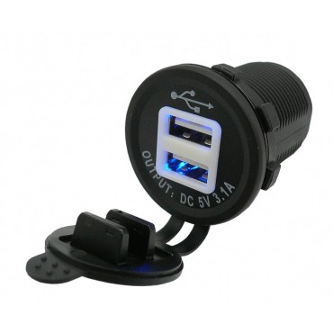 ΑΝΤΑΠΤΟΡΑΣ ΑΝΑΠΤΗΡΑ (ΠΡΙΖΑ) ΜΕ ΚΑΠΑΚΙ 12/24 V ΚΑΙ 2 ΘΥΡΕΣ USB (ΜΑΥΡΟΣ/ΑΔΙΑΒΡΟΧΟΣ)