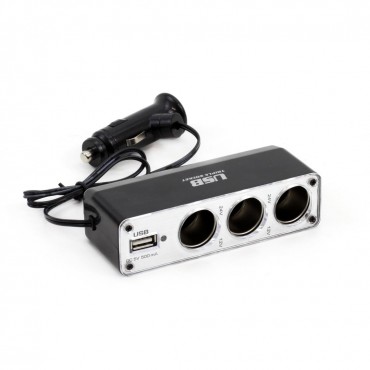 ΑΝΤΑΠΤΟΡΑΣ ΑΝΑΠΤΗΡΑ ΤΡΙΠΛΟΣ+ 1 USB 500mA ΜΕ ΚΑΛΩΔΙΟ 30cm 12/24V 2A MAX AMiO - 1 ΤΕΜ.